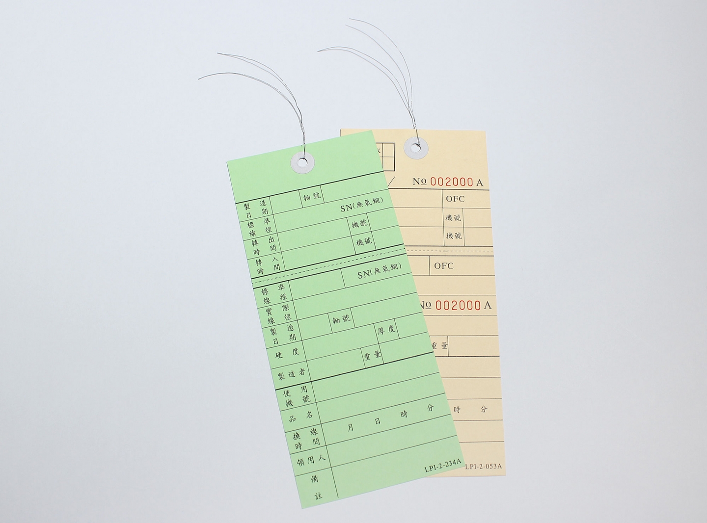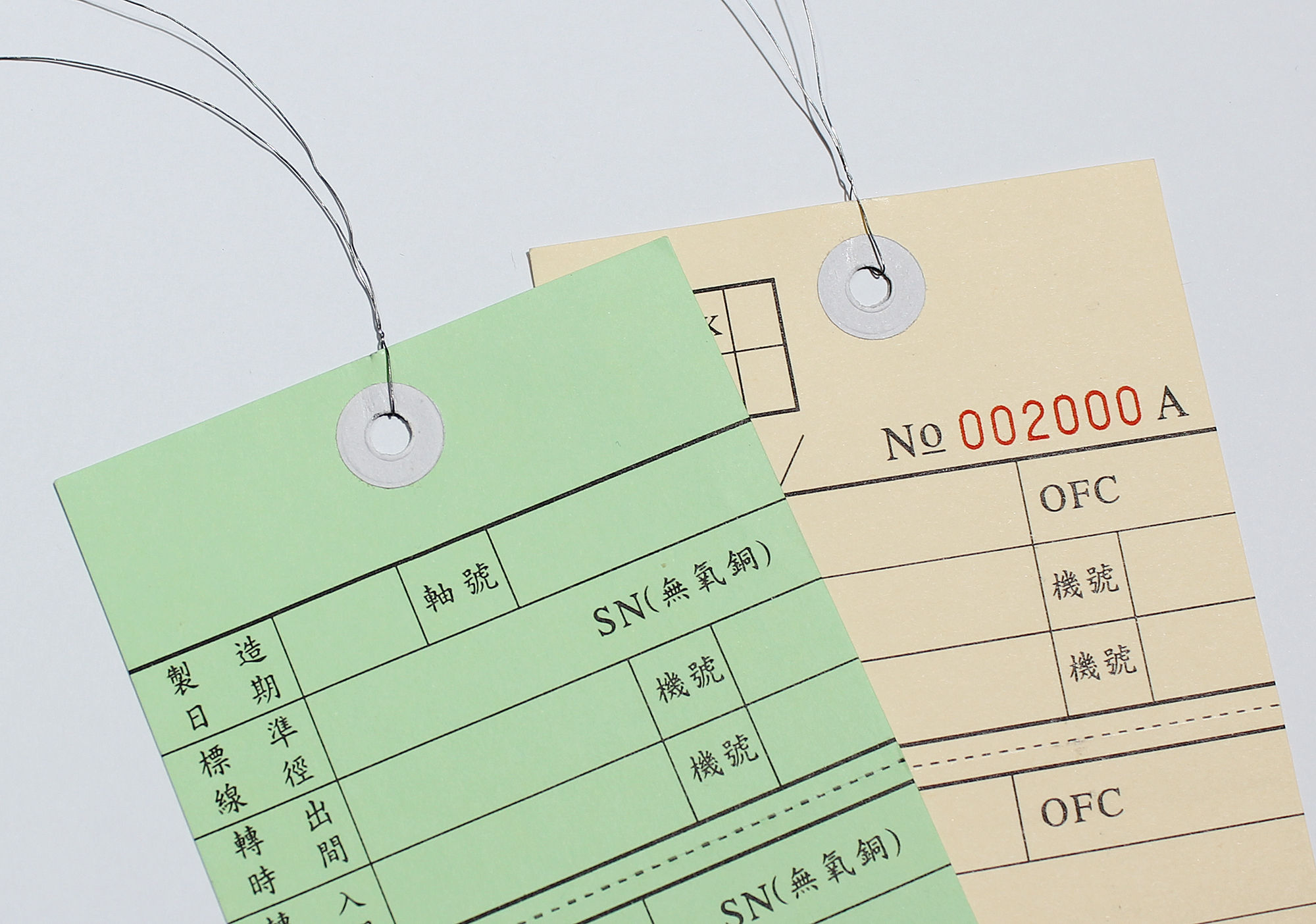高韌性鐵線不易斷,孔徑外加強貼紙處理,流水號、撕線加工,易於庫存管理與標示