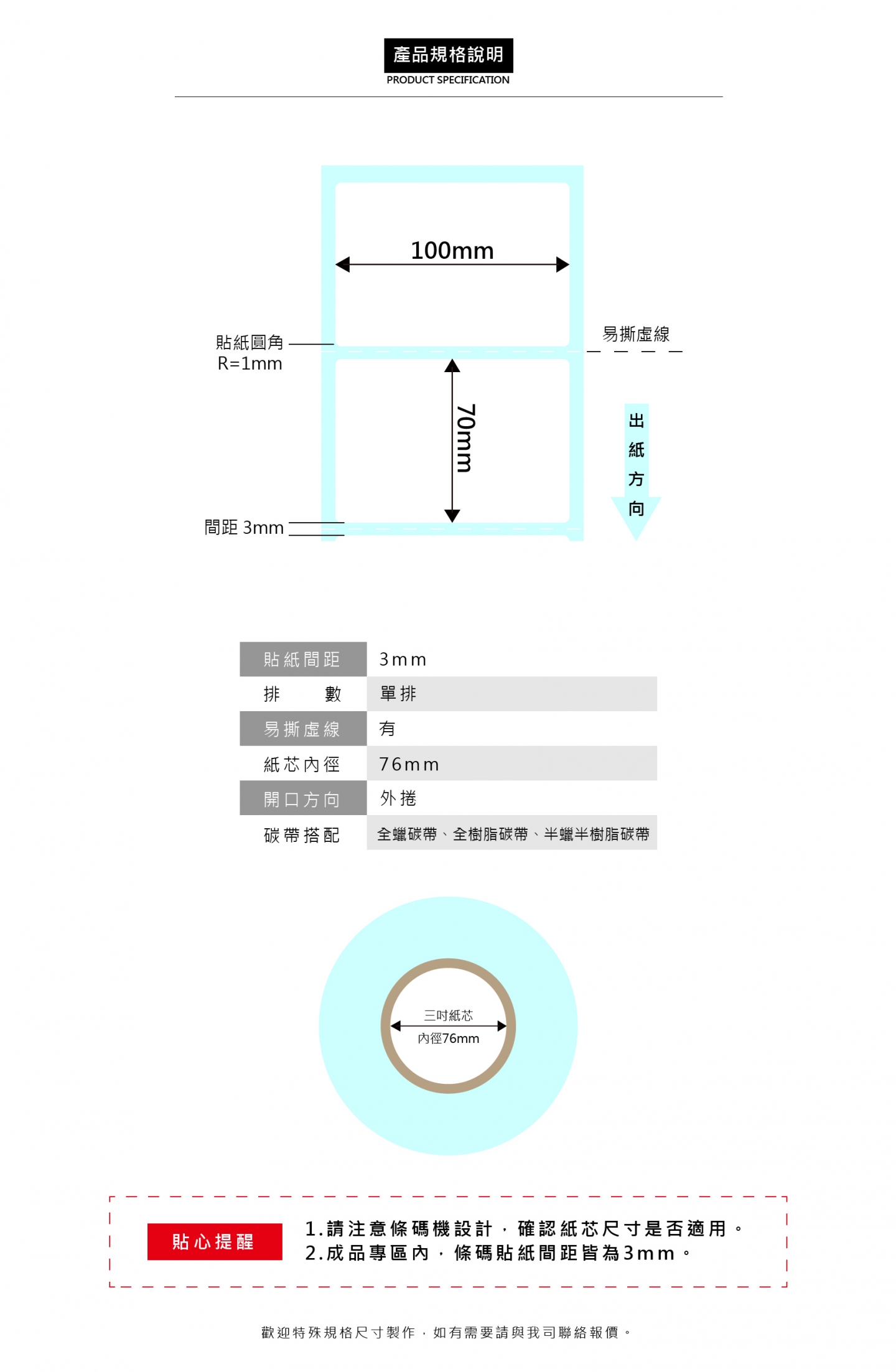 三吋紙芯【內徑76mm】