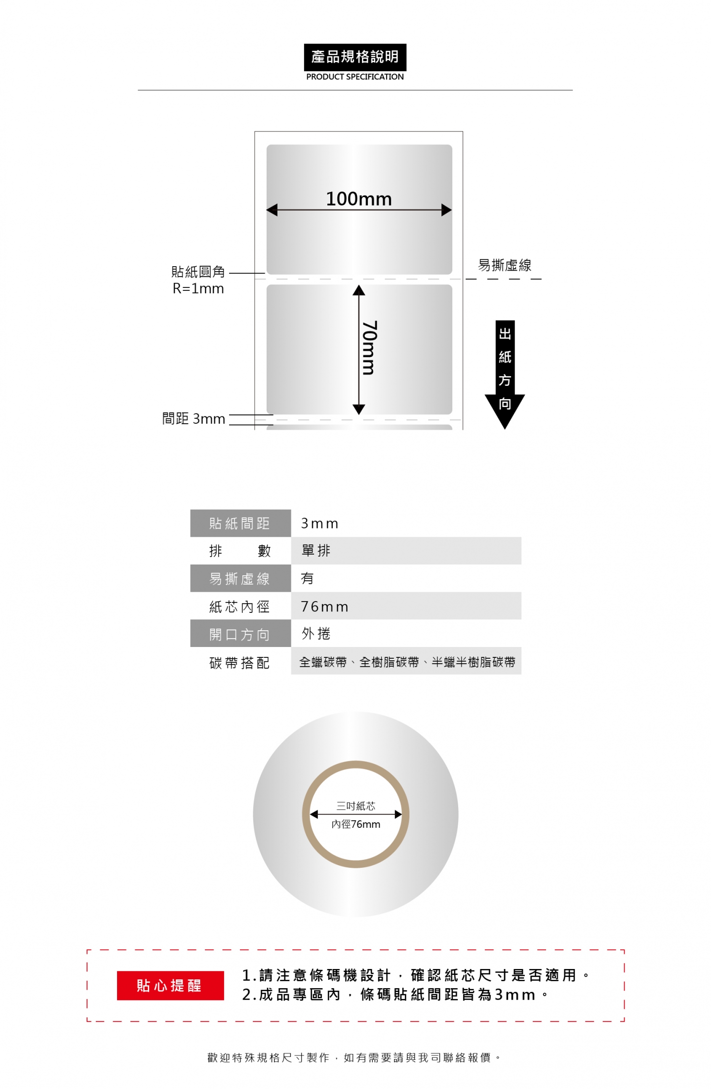 三吋紙芯【內徑76mm】