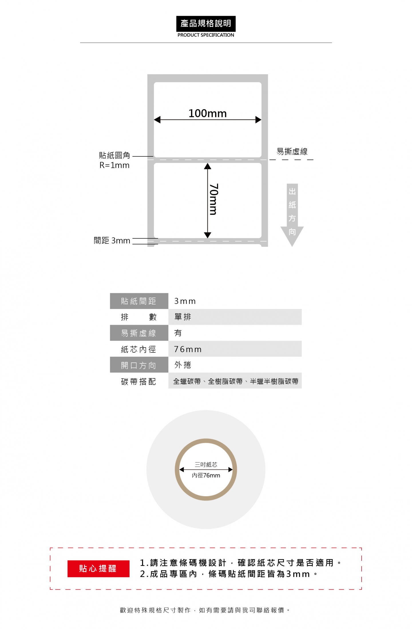 三吋紙芯【內徑76mm】